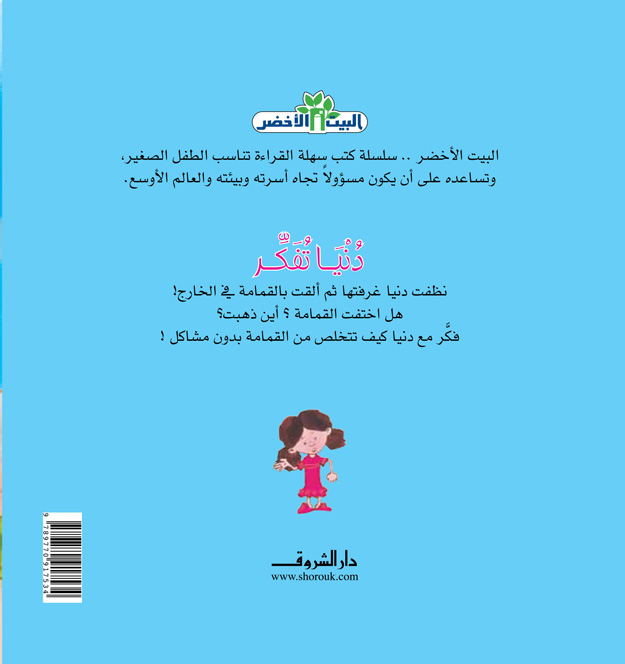 نظفتْ دنيا غرفتها، ثم ألقت بالقمامة في الخارج. لكن.. هل اختفت القمامة؟ أين ذهبتْ؟ فكّر مع دنيا كيف تتخلص من القمامة بدون مشاكل. سلسلة البيت الأخضر سهلة القراءة.. تُناسب الطفل الصغير، وتساعده على أن يكون مسئولًا تجاه أسرته وبيئته والعالم الأوسع.