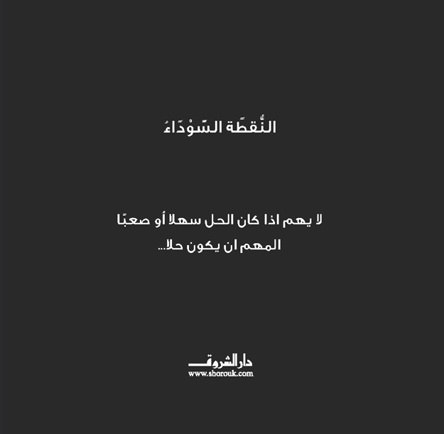كل يوم يلعب الأولادُ كل الألعاب على أرضهم الواسعة الخضراء، وفي يوم من الأيام استيقظوا ليجدوا أن هناك نقطةً سوداءَ عملاقة هبطت على أرضهم وأفسدت عليهم كل الألعاب. يرضى بعضُهم بالوضع القائم، بينما يرفض مروان الاستسلام؛ فيقرر أنه لا يهم إذا كان الحل سهلًا أو صعبًا، المهم أن نجد حلًّا. قصة خلابة عن المثابرة والتعاون والأفكار المجنونة المدهشة.