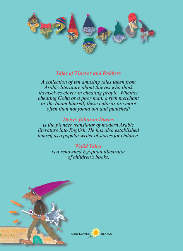 A collection of ten amusing tales taken from Arabic literature about thieves who think themselves clever in cheating people and outsmarting everyone. Whether tricking Goha or a poor man, a rich merchant or the Imam himself, these culprits are more often than not found out and punished! Sunflower Books serves to relay cultural and historical anecdotes from the Arab world, in an intriguing manner and elegant style. Dar El Shorouk takes pride in collaborating with an icon of Modern Arabic culture, Mr. Denys Johnson-Davies in publishing this unique series for young readers.