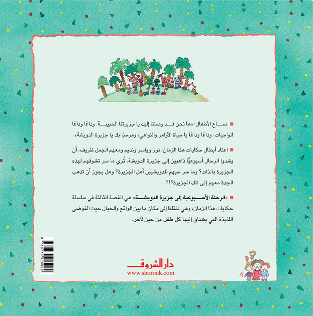صاح الأطفال: "ها نحن قد وصلنا إليكِ يا جزيرتنا الحبيبة. وداعًا للواجبات! وداعًا للأوامر! ومرحبًا بكِ يا جزيرة الدويشة". اعتاد أبطال "حكايات هذا الزمان"، نور وياسر ونديم ومعهم الجمل ظريف، أن ينطلقوا أسبوعيًّا ذاهبين إلى جزيرة الدويشة. تُرى ما سِر تشوُّقهم لهذه الجزيرة بالذات؟ وما سِر حُبهم للدويشيين أهل الجزيرة؟ وهل يجوز أن تذهب الجدة معهم إلى تلك الجزيرة؟ قصة طريفة وشيقة تنقلنا إلى مكان بين الواقع والخيال، حيث الفوضى اللذيذة التي يشتاقُ إليها كلُّ صغير (وكبير!) من حين لآخر.