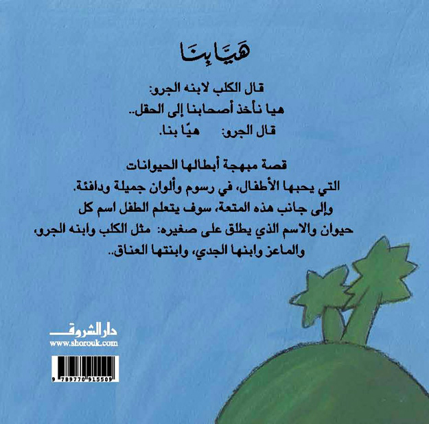 قال الكلبُ لابنه الجرو: "هيا نأخذ أصحابنا إلى الحقل ليأكلوا البرسيم"، فقال الجرو: "هيا بنا!"، وانطلقوا في مغامرة مرحة تَعرَّفوا من خلالها على الحيوانات وصغارهم. سلسلة من خمسة عناوين تقدم معلومات علمية ولُغوية عن الحيوانات في صيغة حكاية لطيفة. تزود الطفلَ بمعلومات مختلفة عن الحيوانات؛ مثل: أسماء بيوتها، أو أصواتها، أو صغارها. تتميز هذه السلسلةُ بلُغتها البسيطة التي تُتيح للأهل قراءة السلسلة للأطفال الصغار جدًّا، وتُتيح للأطفال المتمكنين من القراءة الاستمتاعَ بها وحدهم.