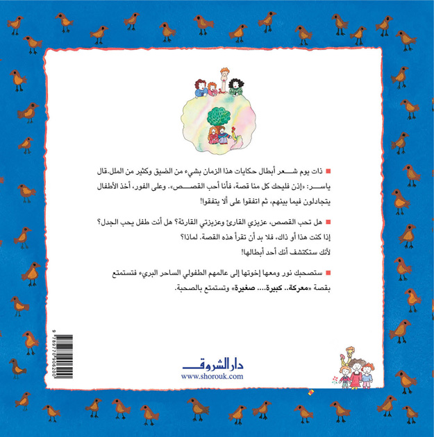 ذات يوم شعر أبطال "حكايات هذا الزمان" بشيء من الضيق، وكثيرٍ من الملل. قال ياسر: "إذن فليحكِ كل منا قصة، فأنا أحب القصص"، وعلى الفور أخذ الأطفالُ يتجادلون فيما بينهم، ثم اتفقوا على ألا يتفقوا! هل تحب القصصَ عزيزي القارئ وعزيزتي القارئة؟ هل أنت طفلٌ يحبُّ الجدل؟ إذا كنت هذا أو ذاك فلا بد أن تقرأ هذه القصة؛ لأنك ستكتشف أنكَ أحدُ أبطالها. ستَصحبك نور وإخوتها إلى عالمهم الطفولي الساحر البريء، فتستمتع بالقصة وتستمتع بالصحبة.
