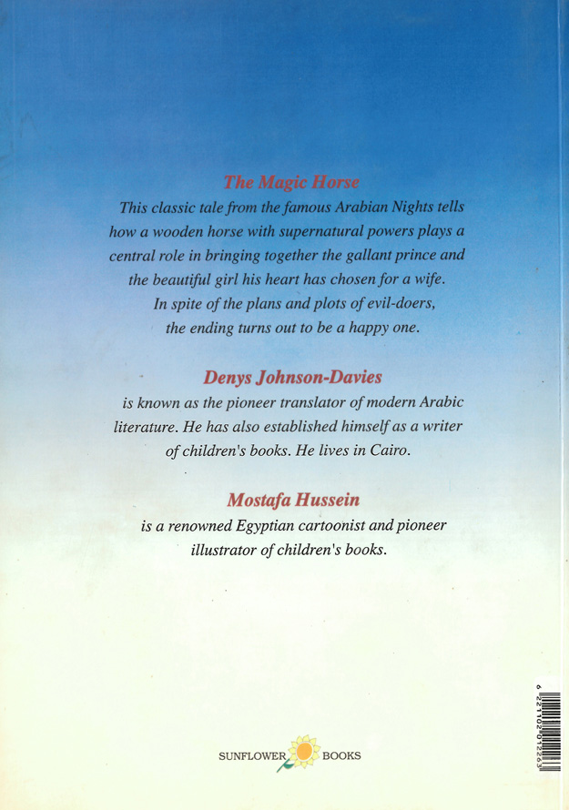 This classic tale from the famous Arabian Nights tells how a wooden horse with supernatural powers plays a central role in bringing together the gallant prince and the beautiful girl his heart has chosen for a wife. In spite of the plans and plots of evil doers, the ending turns out to be a happy one. Sunflower Books serves to relay cultural and historical anecdotes from the Arab world, in an intriguing manner and elegant style. Dar El Shorouk takes pride in collaborating with an icon of Modern Arabic culture, Mr. Denys Johnson-Davies in publishing this unique series for young readers.