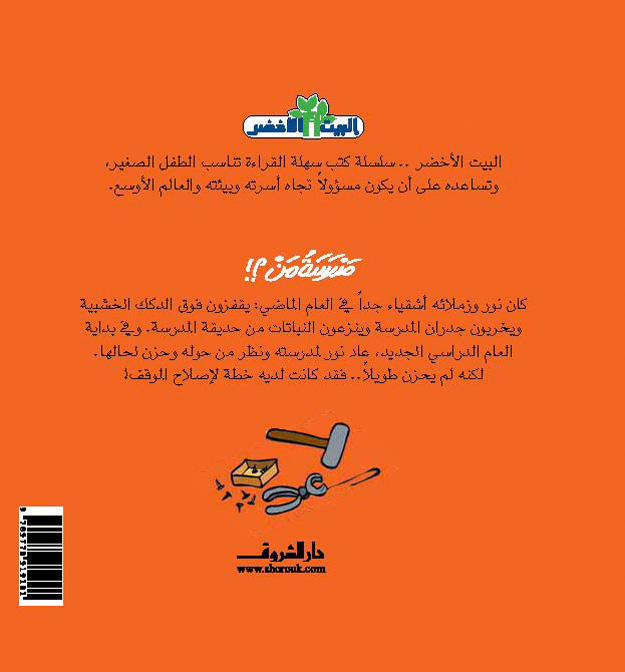 كان نور وزملاؤه أشقياء جدًّا في العام الماضي؛ يقفزون فوق الدكك الخشبية، ويُخربون جدران المدرسة، وينزعون النباتات من حديقة المدرسة. وفي بداية العام الدراسي الجديد، عاد نور لمدرسته وحزن لحالها، لكنه قرر عدم الاستسلام للحزن ، ووضع خطة لإنقاذ الموقف! سلسلة البيت الأخضر سهلة القراءة.. تُناسب الطفل الصغير، وتساعده على أن يكون مسئولًا تجاه أسرته وبيئته والعالم الأوسع.