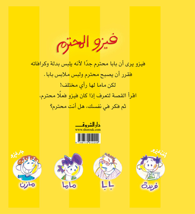 فيزو يرى أن بابا مُحترم جدًّا لأنه يلبس بدلة وكرافتة، فقرر أن يصبح محترمًا ويلبس لبس بابا. لكن ماما لها رأي مختلف! اقرأ القصة لتعرف إذا كان فيزو فعلًا محترمًا، ثم فكِّر في نفسك، هل أنت محترم؟ من خلال شخصية فيزو يتناول الفنان وليد طاهر المشاكل البسيطة التي تواجه الطفل مع نفسه والآخرين والحياة.