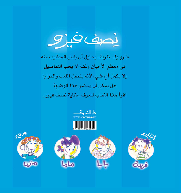 فيزو ولد ظريف يحاول أن يفعل المطلوب منه في معظم الأحيان، ولكنه لا يحب التفاصيل، ولا يكمل أي شيء لأنه يُفضِّل اللعب والهزار. هل يمكن أن يستمر هذا الوضع؟ اقرأ هذا الكتاب، كله وليس نصفه؛ لتعرف حكاية نصف فيزو. من خلال شخصية فيزو يتناول الفنان وليد طاهر المشاكل البسيطة التي تواجه الطفل مع نفسه والآخرين والحياة.