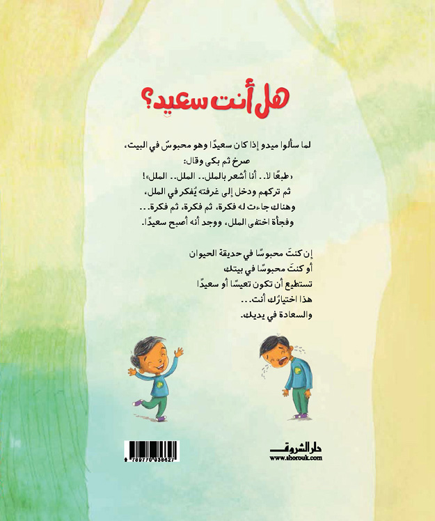 لما سألوا ميدو إذا كان سعيدًا وهو محبوس في البيت، صرخ وبكى وقال: "طبعًا لا! أشعر بالملل!". ثم دخل غرفته وأخذ يفكر في الملل. وهناك جاءته فكرة.. ثم فكرة.. ثم فكرة! وفجأة اختفى الملل ووجد أنه أصبح سعيدًا. إن كنتَ محبوسًا في حديقة الحيوانات أو في بيتك، تستطيع أن تكون تعيسًا أو سعيدًا؛ فهذا اختيارك أنت.. والسعادة في يديك.