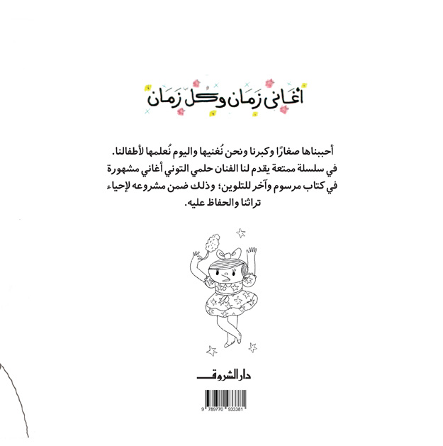 أغاني زمان وكل زمان، أحببناها صغارًا وكبرنا ونحن نغنيها، واليوم نُعلمها لأطفالنا. في هذه السلسلة الممتعة يقدم لنا الفنان حلمي التوني اختيارات من أغانٍ تراثية مصرية مشهورة في كتاب مرسوم وآخر للتلوين، وذلك ضمن مشروعه لإحياء تراثنا والحفاظ عليه.